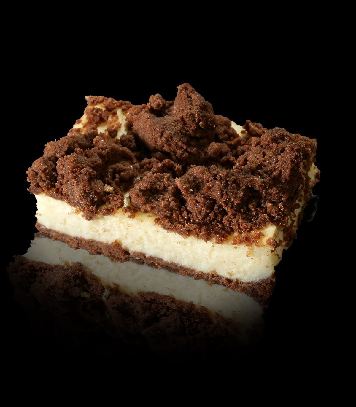 Er zeichnetsich durch seinen marmorierten, rustikalen Look und die Kombination aus süßem Quark und kakaohaltigem Mürbeteig aus.